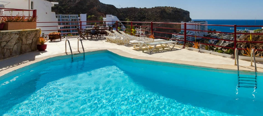 Nært sentrum og strender, felles privat basseng 2 meter fra veranda samt en stor solrik terrasse gjør dette til et godt alternativ når du skal bo i Puerto Rico. Stort, godt utrustet kjøkken med panoramautsikt gjør det koselig å lage mat selv. Perfekt for langtidsferierende.